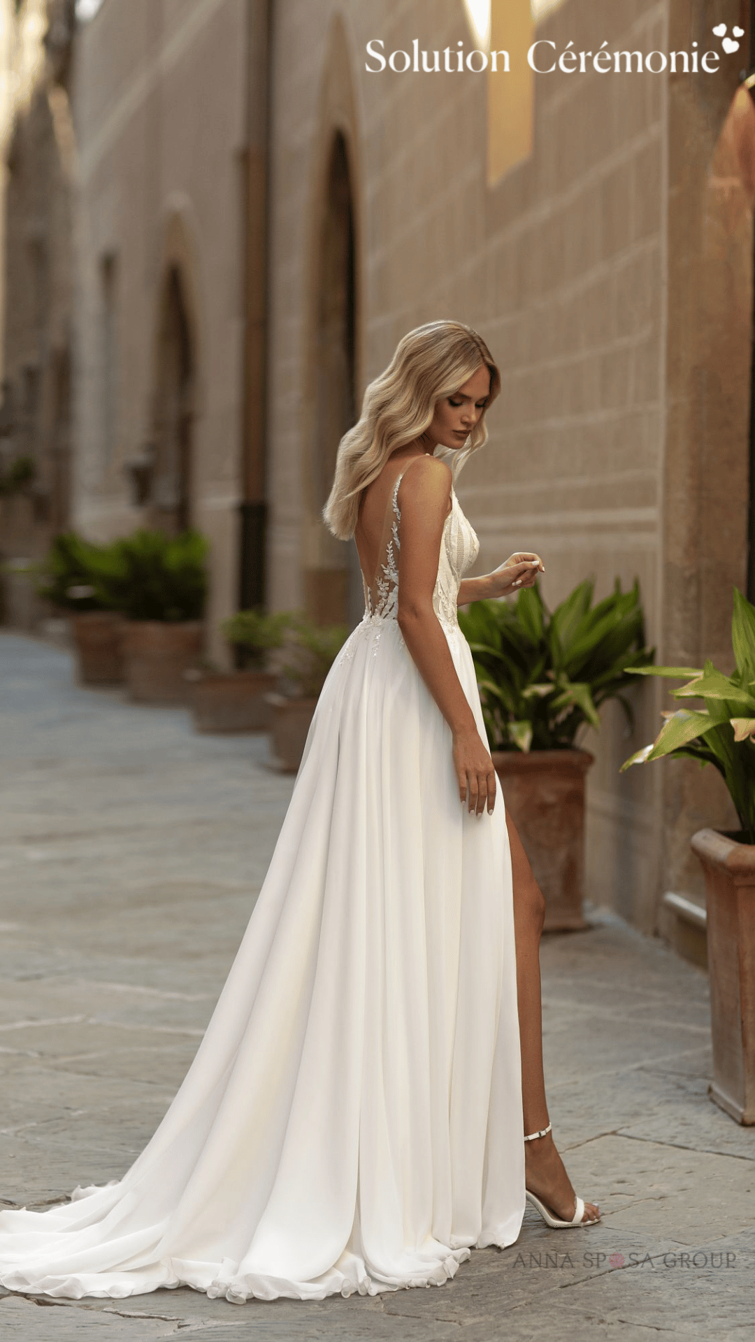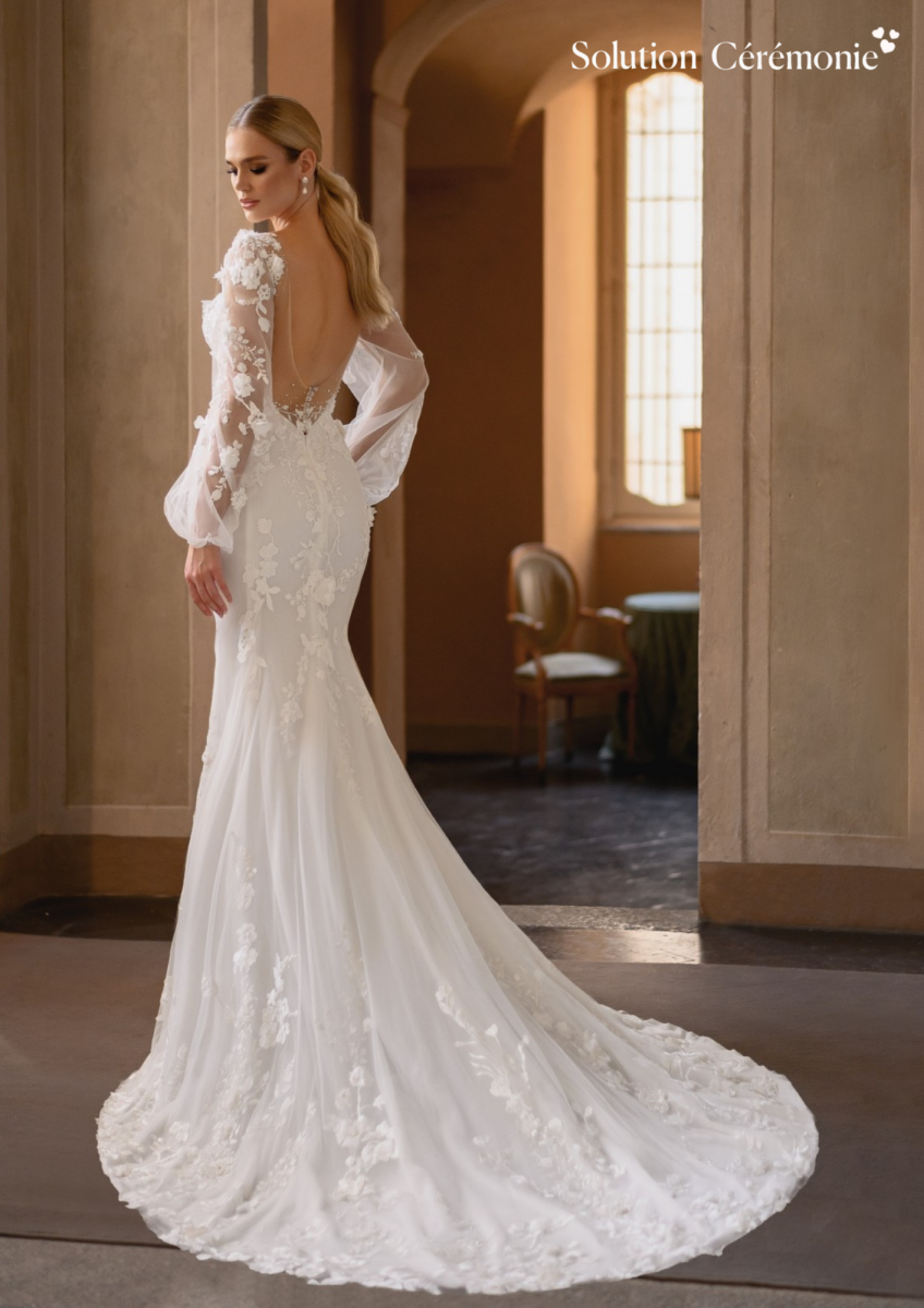 Découvrez notre collection de robes de mariage tendance dos nu chez Solution Cérémonie.