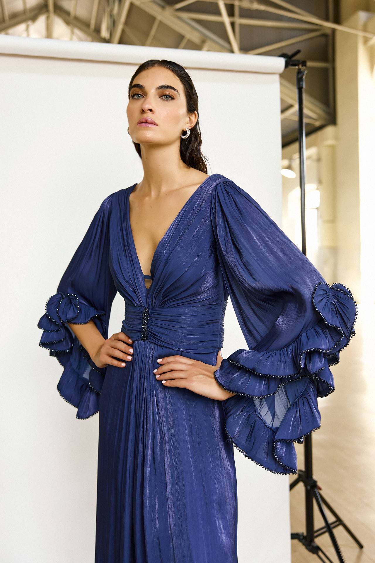 Cette robe longue et fluide pour maman de mariée a été pensée pour ce moment unique. Sa coupe haute couture apporte une allure élégante. Le décolleté en V met en valeur le buste avec féminité, tout en restant chic.